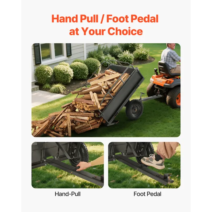 | Nom du produit | Remorque à Benne Basculante-VEVOR-283 L-Remorque de Tracteur Tondeuse à Gazon de Jardin en Acier-Capacité de Charge 226,8 kg |