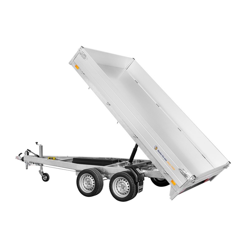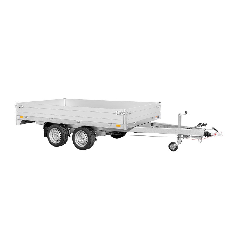 – Longueur : 306 cm – Largeur : 184 cm – Poids : 2700kg – Charge utile : 2080 kg – Poids à vide : 620 kg – Longueur totale : 470 cm – Largeur totale : 190 cm – Hauteur ridelles : 30 cm – Hauteur plancher : 74cm – Dimension de pneus : 195/50R13C – Freiné/Non-freiné : Freinée – Essieu : double – Flèche en : V – Basculement : oui |